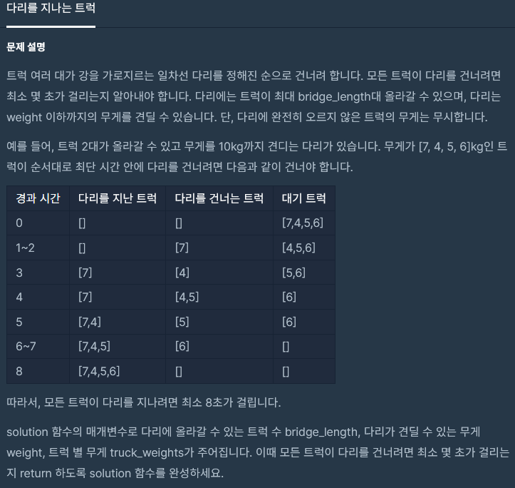 maxWeight -= t_truck_weights[i].truck_weights; // 다리를 건넌 트럭의 무개를 제거한다.