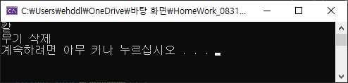 cout << "무기 삭제" << endl;
